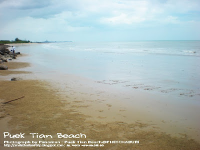 Puek Tian Beach, Phetchaburi province, 7 kilometers south of Chao Samran Beach. Otherwise one can travel via Phetch Kasem Highway; a left turn is made at Amphur Tha Yang to join the road along the Irrigation Canal Route II for a distance of 15 kilometers. Puek Tian Beach has white sandy beach itself is very wide and long.